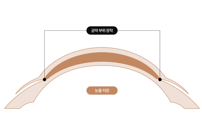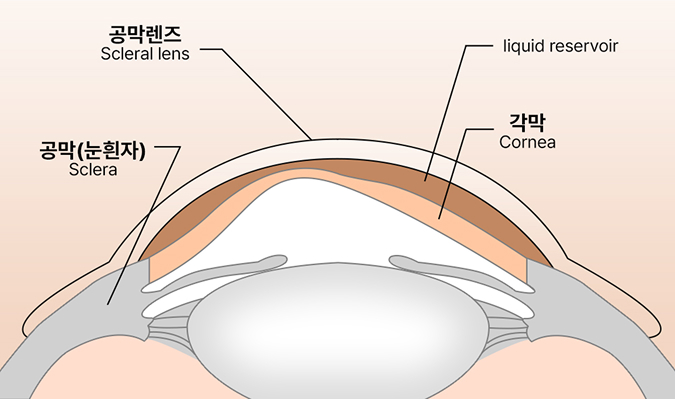 공막렌즈로 인해 각막과 렌즈 사이에 눈물층(clearance)이 생기고, 불규칙 난시가 상쇄됩니다.